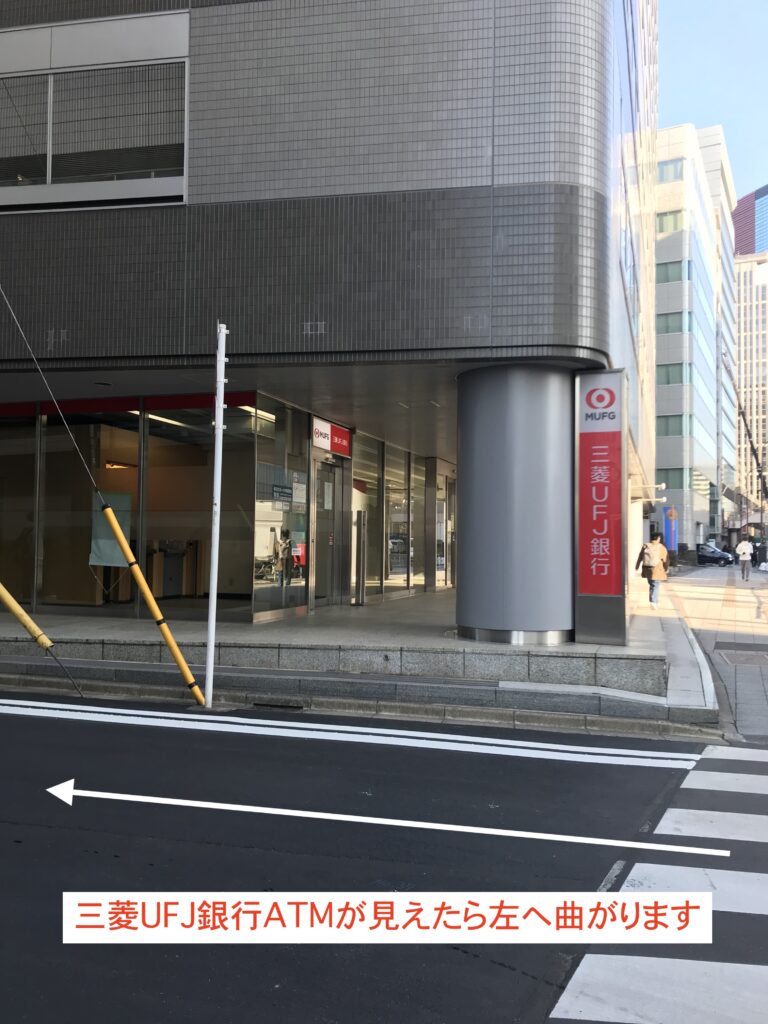 - 2,三菱UFJ銀行のATMが見えたら左へ曲がります。