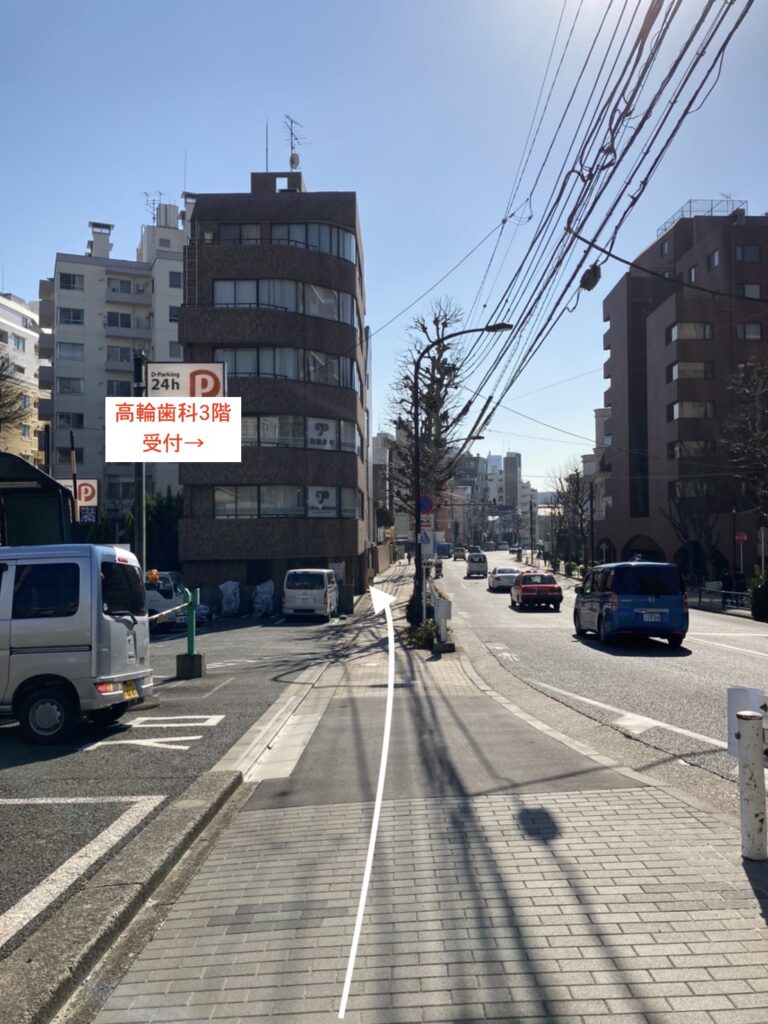 - 5,目の前に高輪歯科が見えます