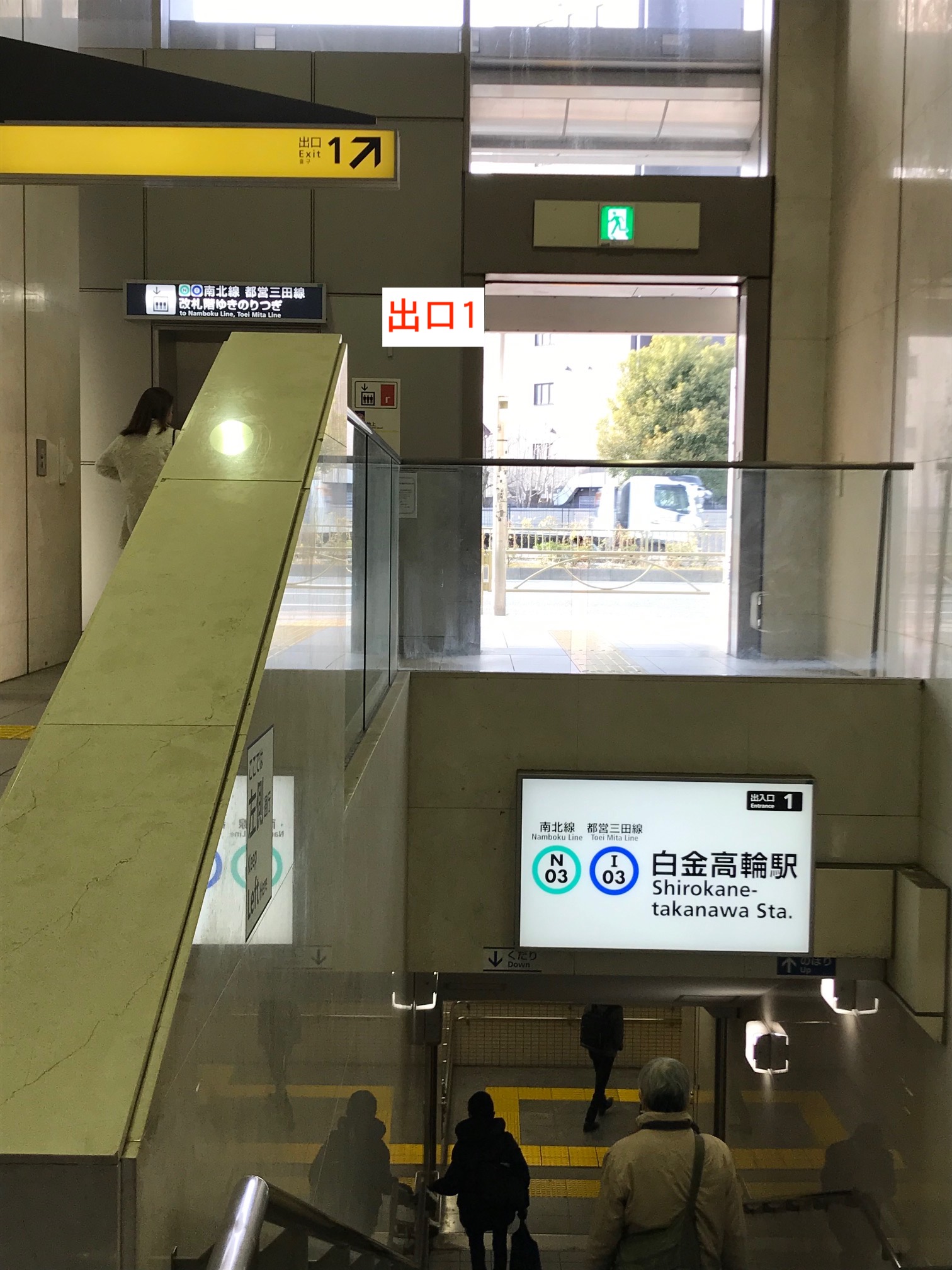 - 1,白金高輪駅1番出口より外に出ます。