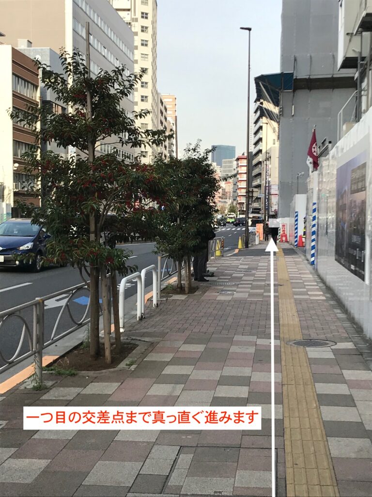 - 4,一つ目の交差点までまっすぐ進みます