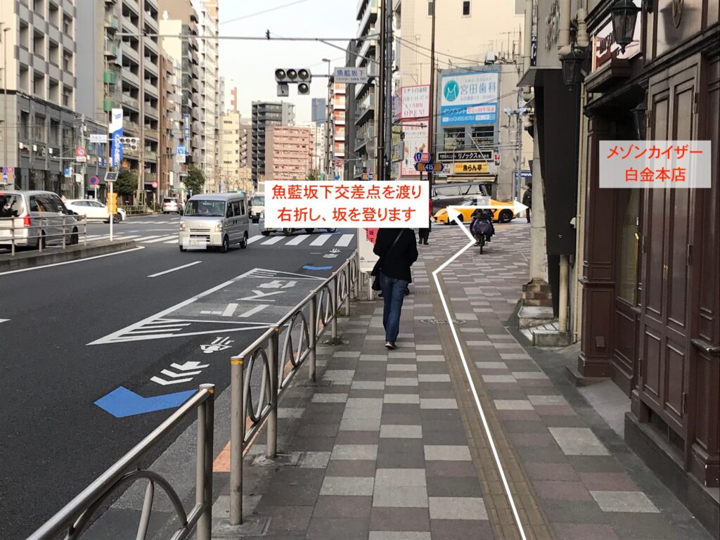 - 5,魚藍坂下交差点を渡り右折し、坂を上ります