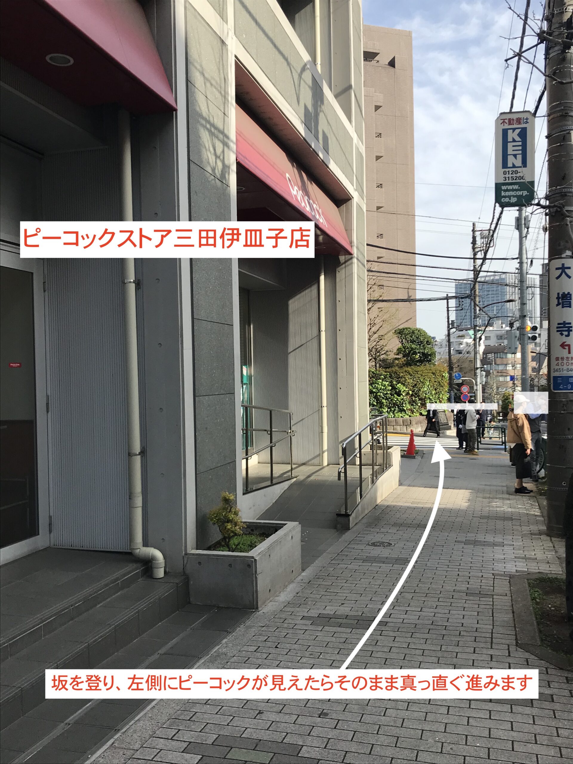 - 6,坂を上り、左側にピーコックが見えたらそのまままっすぐ進みます